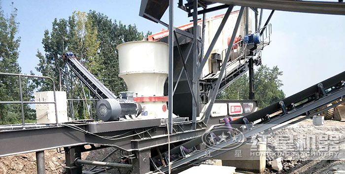 鵝卵石破碎現場圓錐破碎機特別適合用來破碎卵石