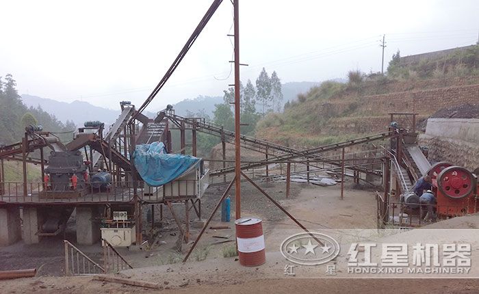 固定式鵝卵石粉碎作業現場,整體費用50萬左右